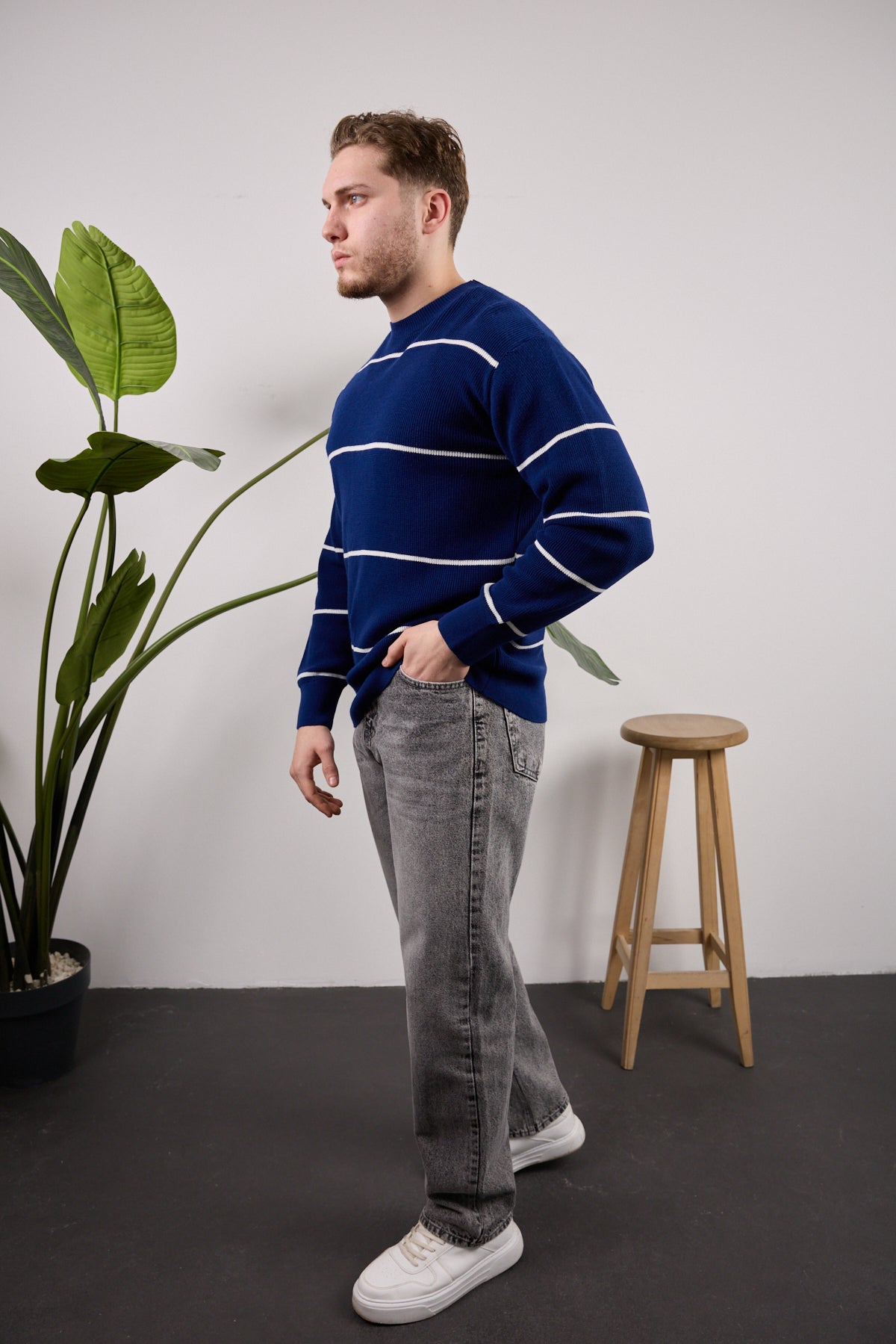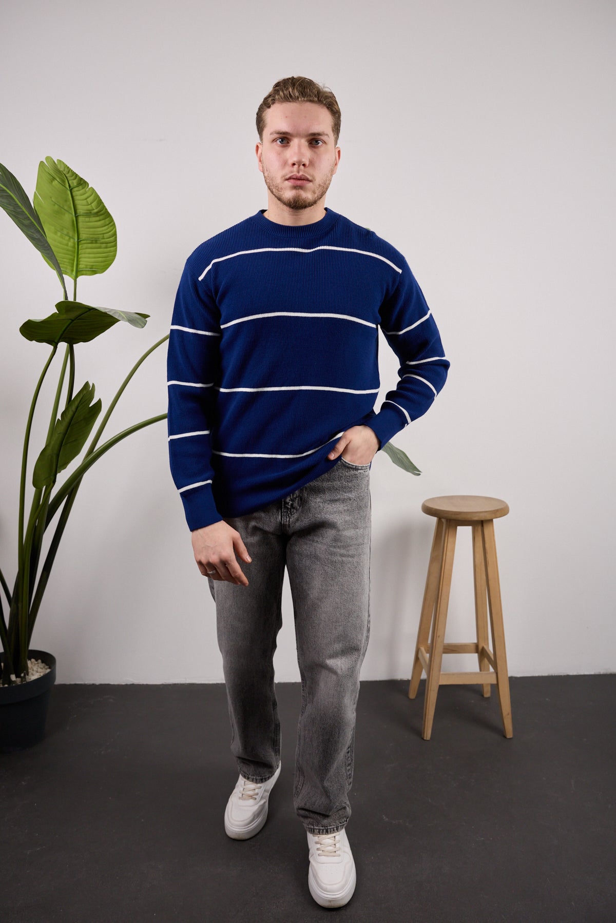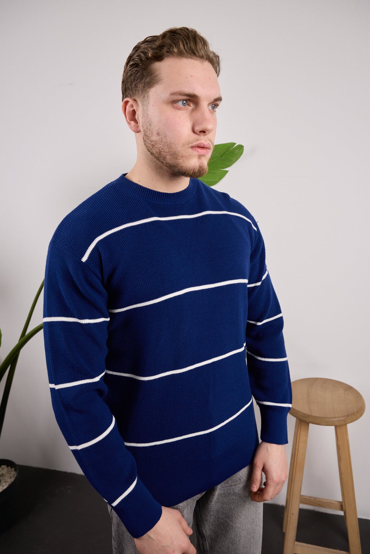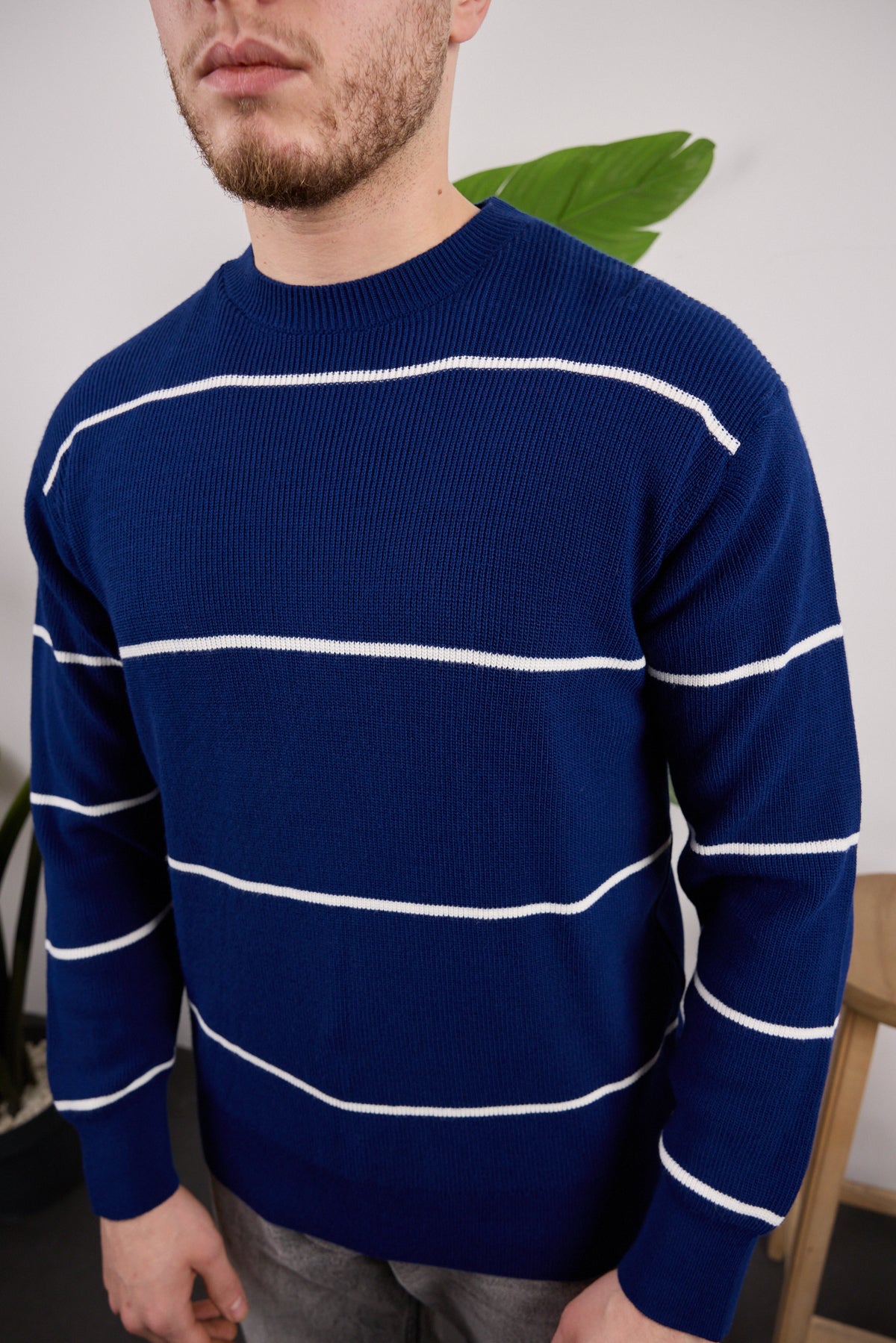 Çizgili Triko Kazak Lacivert
