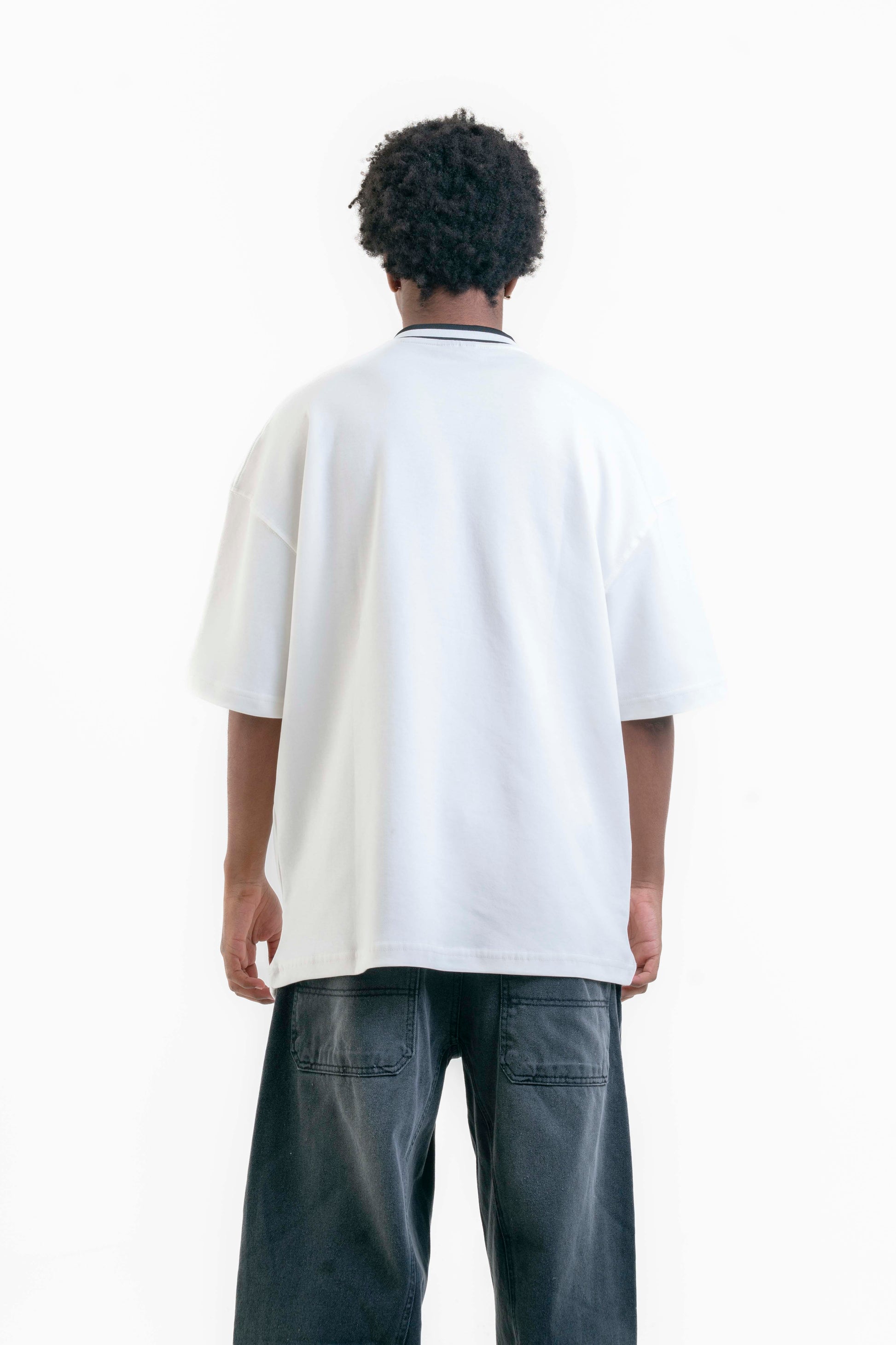 Keep Ready V Yaka Oversize Tişört - Beyaz