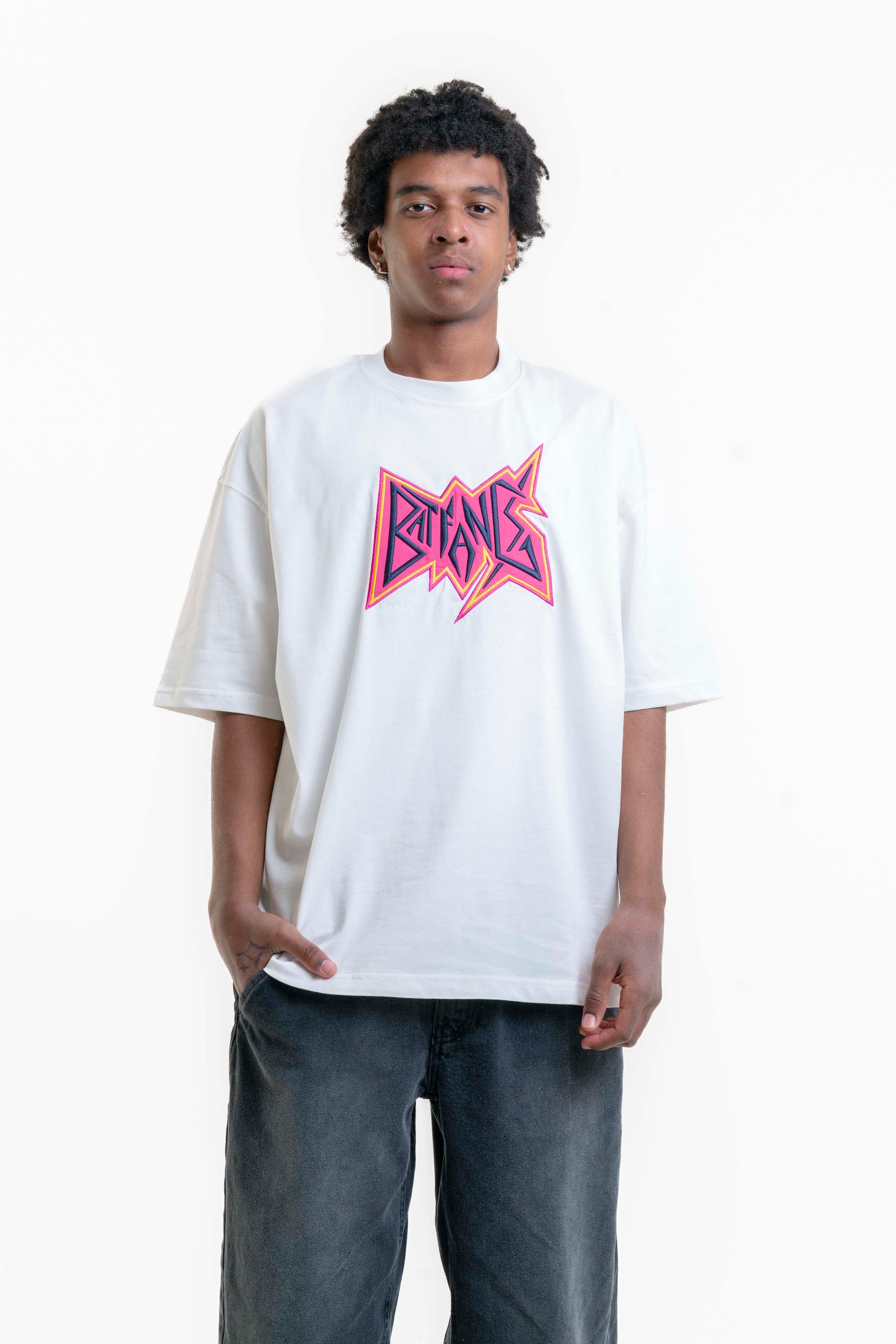 Batfang Nakış Detaylı Oversize T-shirt - Beyaz